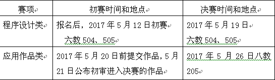 我校在籍本、专科学生均可参加。程序设计类以个人方式报名,应用作品类以项目小组方式报名,学生根据自己擅长的赛项填写报名登记表(见附件1)。学生将报名信息表于2017年5月5日17:00前交至辅导员处,由各学院学科竞赛负责老师汇总后于2017年5月8日17:00前交至信息科学与工程学院李桥老师(8教511室),同时将报名汇总表电子稿发至邮箱55083401@qq.com。